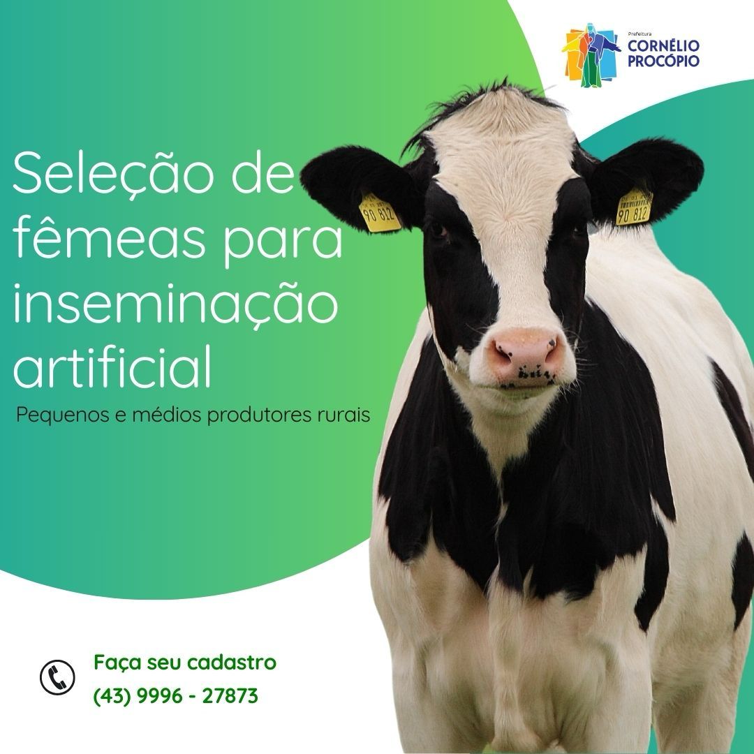 A Secretaria de Agricultura de Cornélio Procópio, por meio da CONAFER – Confederação Nacional de Agricultores Familiares e Empreendedores Familiares Rurais, está com cadastramento aberto para pequenos e médios produtores rurais interessados em inseminação artificial de fêmeas bovinas. Para participar da seleção, os produtores devem possuir Cadpro – Cadastro de Produtor Rural, ter propriedade rural em Cornélio e disponibilizar fêmeas bovinas de gado leiteiro ou de corte.