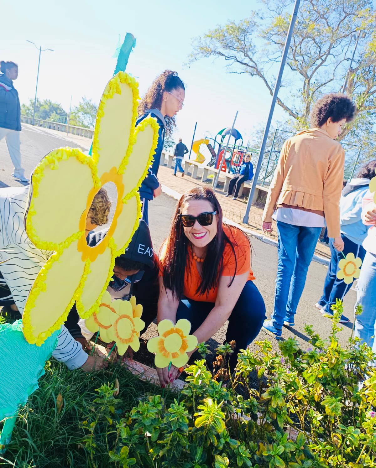 Ao longo do mês, os alunos confeccionaram flores gerberas, que simbolizam a fragilidade e vulnerabilidade das crianças. As flores foram distribuídas na área do Cristo e nos canteiros e jardins da cidade, levando uma mensagem de alerta e sensibilização à população.